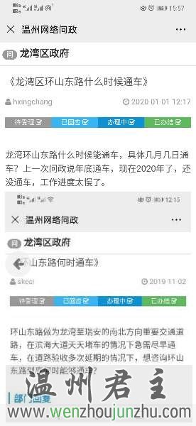 hxingchang向龙湾区政府问:龙湾环山东路什么时候全线开通